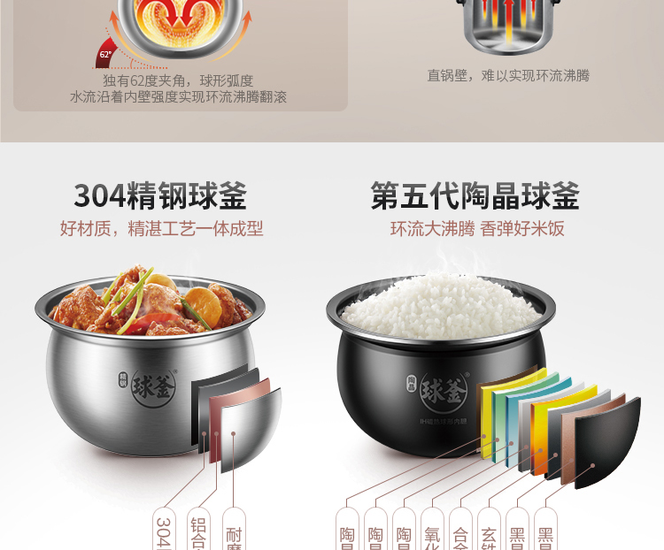 內膽材質:精鋼球釜+陶晶球釜