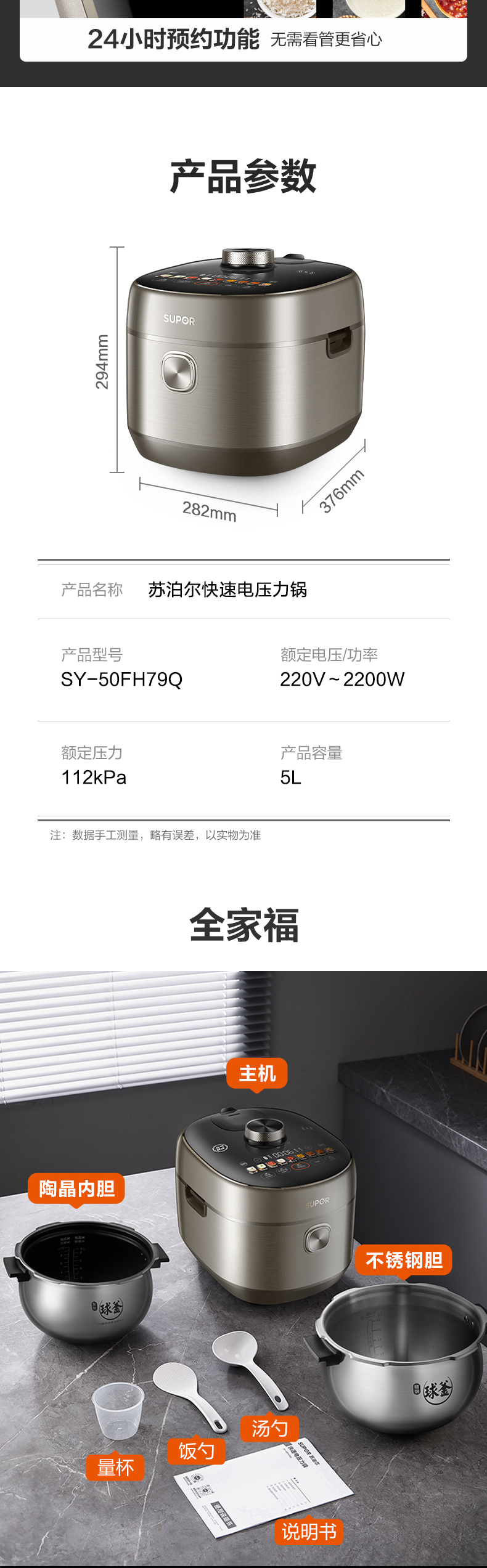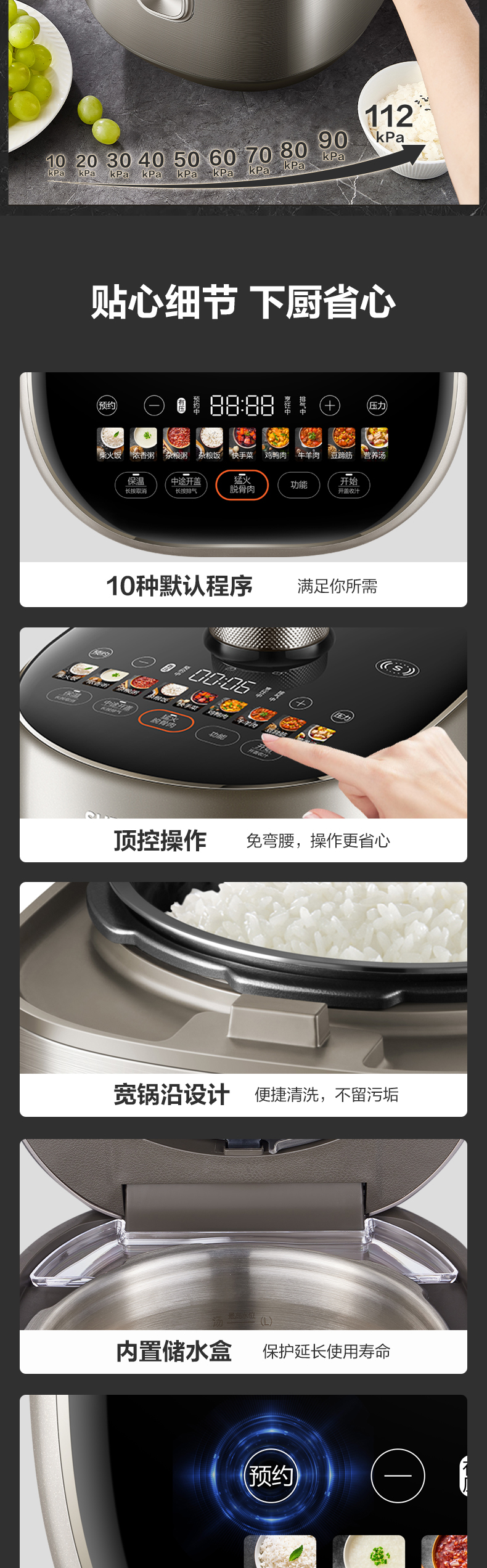 特點(diǎn):2200W、112kPa、6分鐘快手菜、IH、球釜、NFC