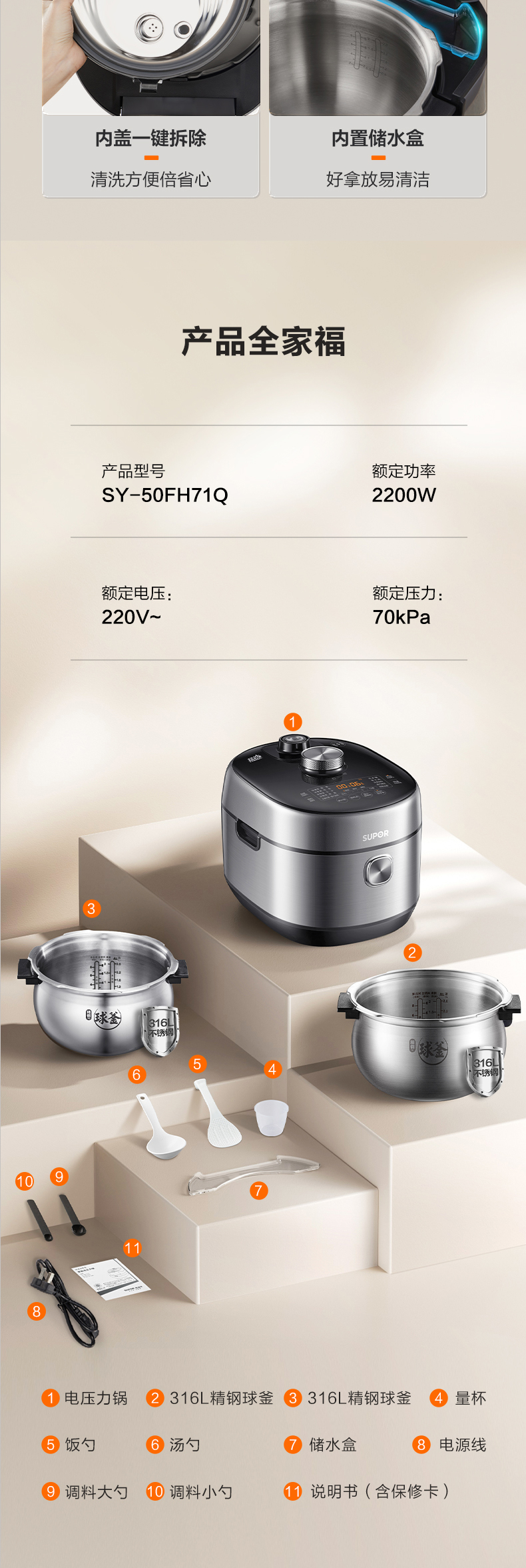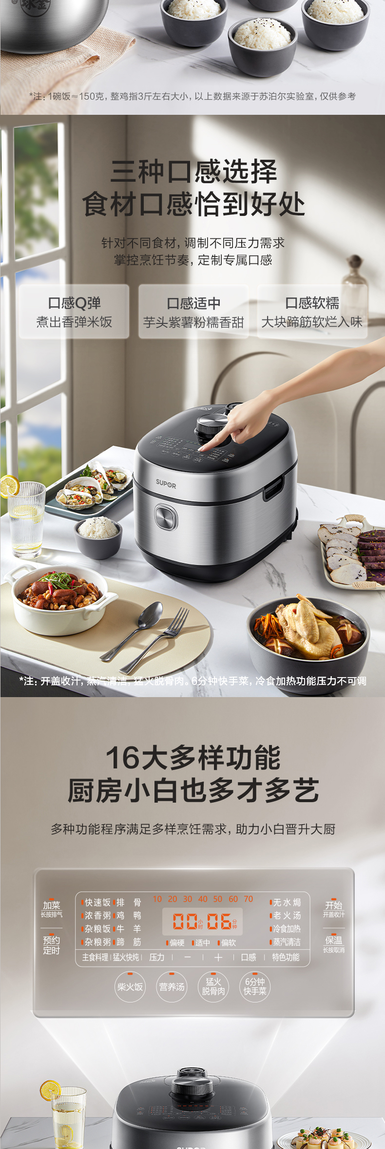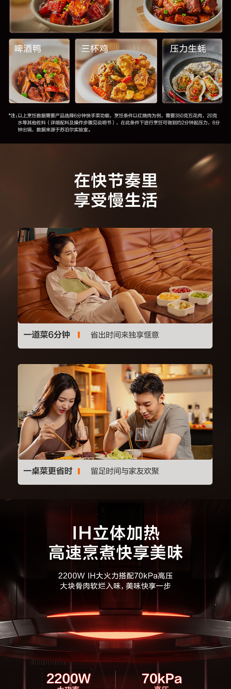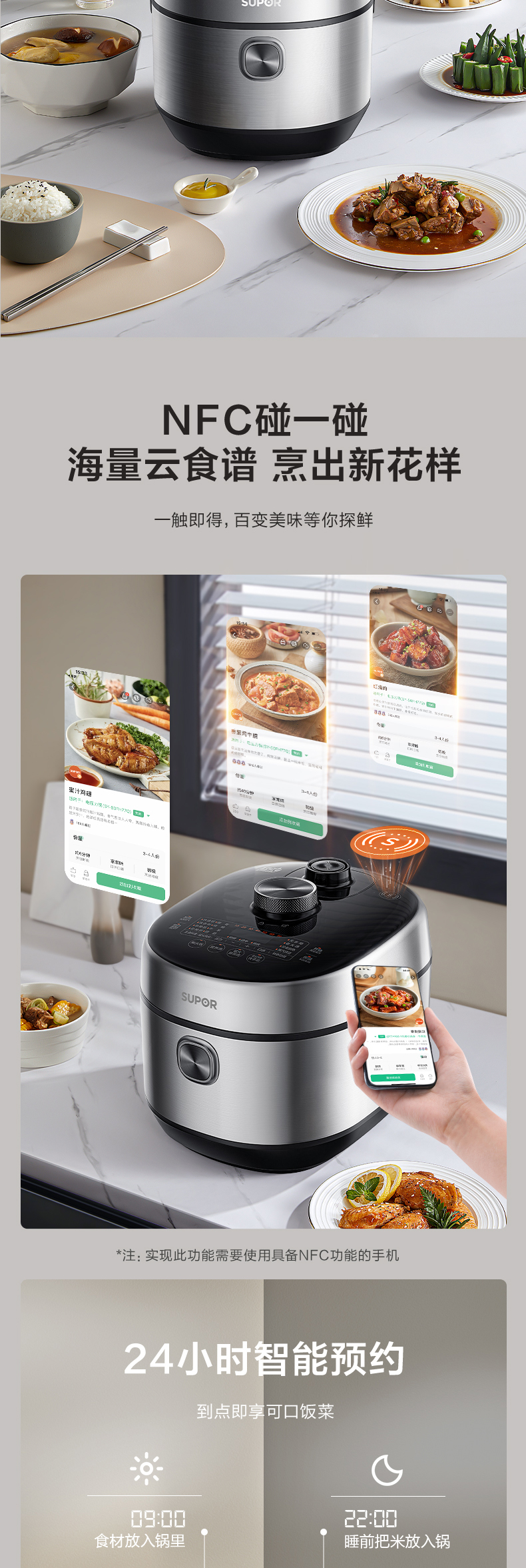 特點(diǎn):2200W、112kPa、6分鐘快手菜、IH、球釜、NFC