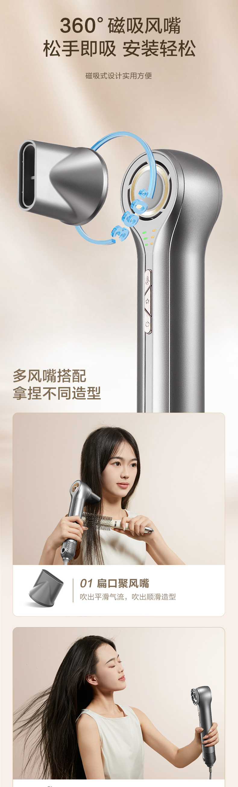 多種磁吸風(fēng)嘴搭配 ,集風(fēng)嘴 +柔風(fēng)嘴 +精油風(fēng)嘴