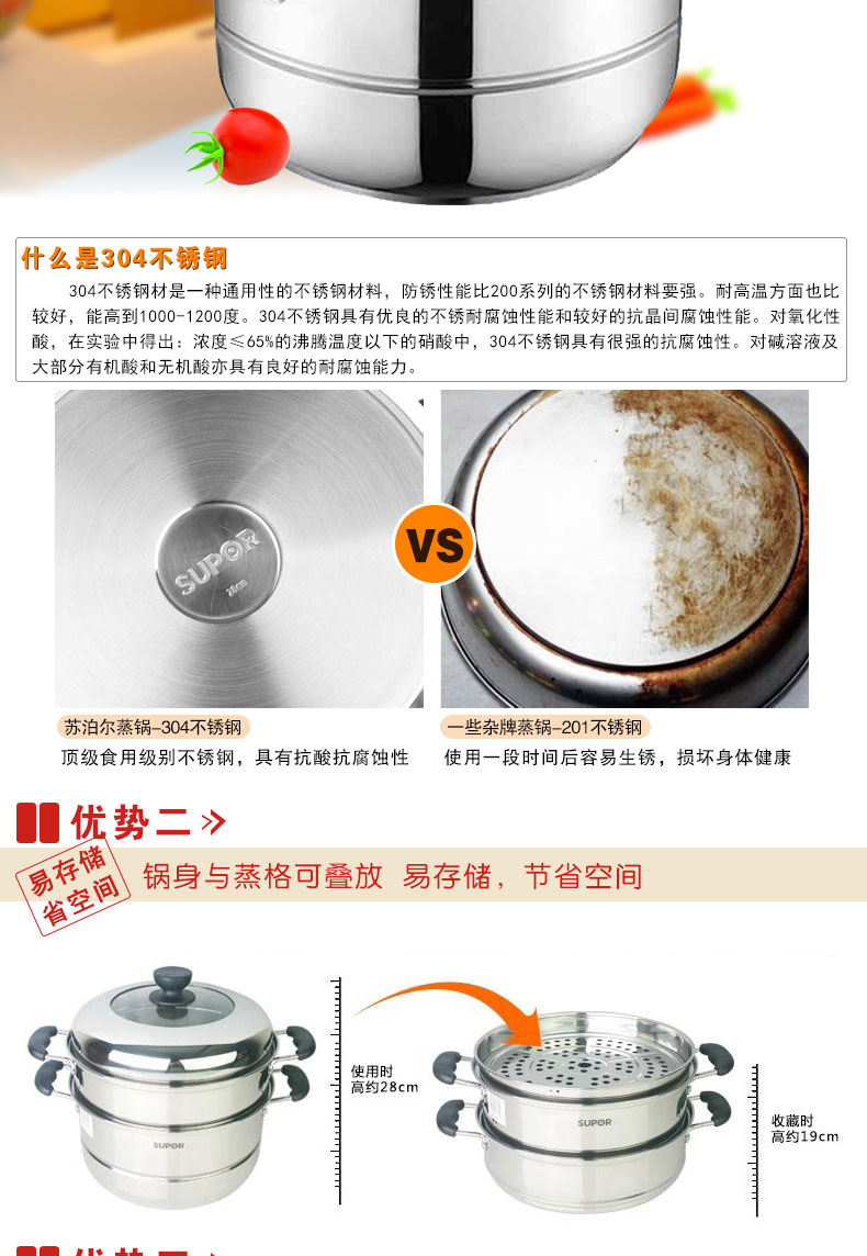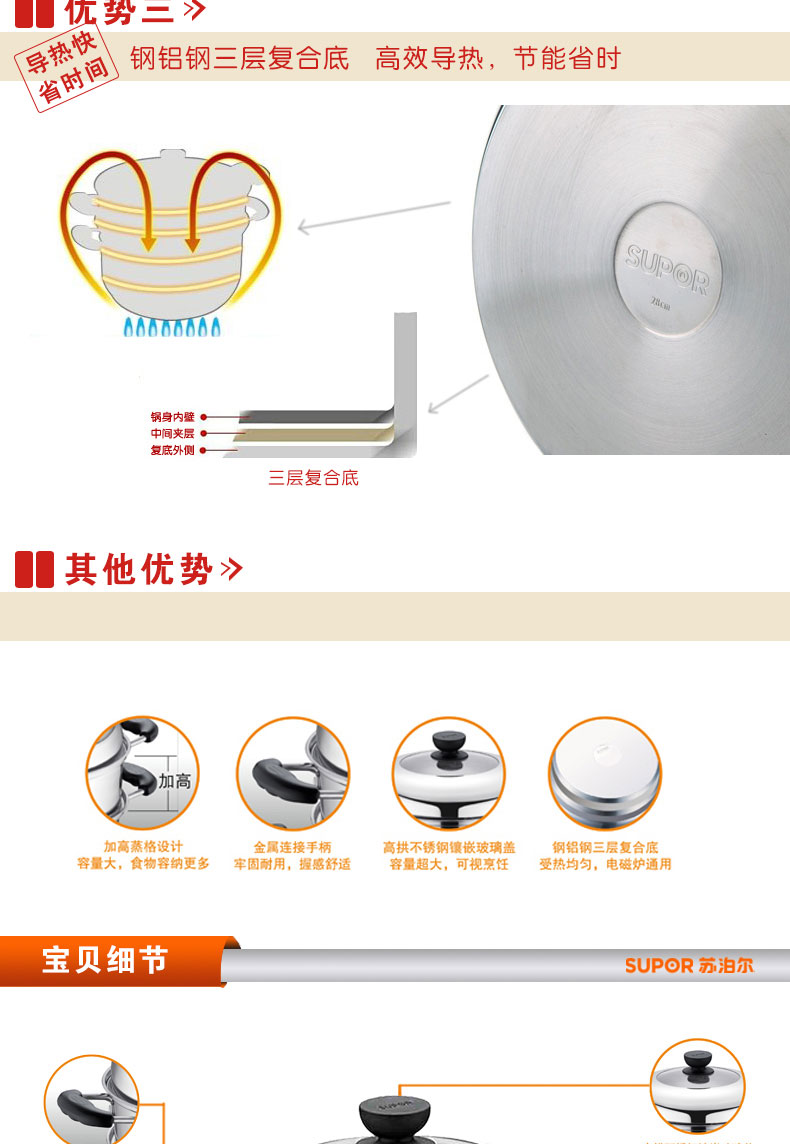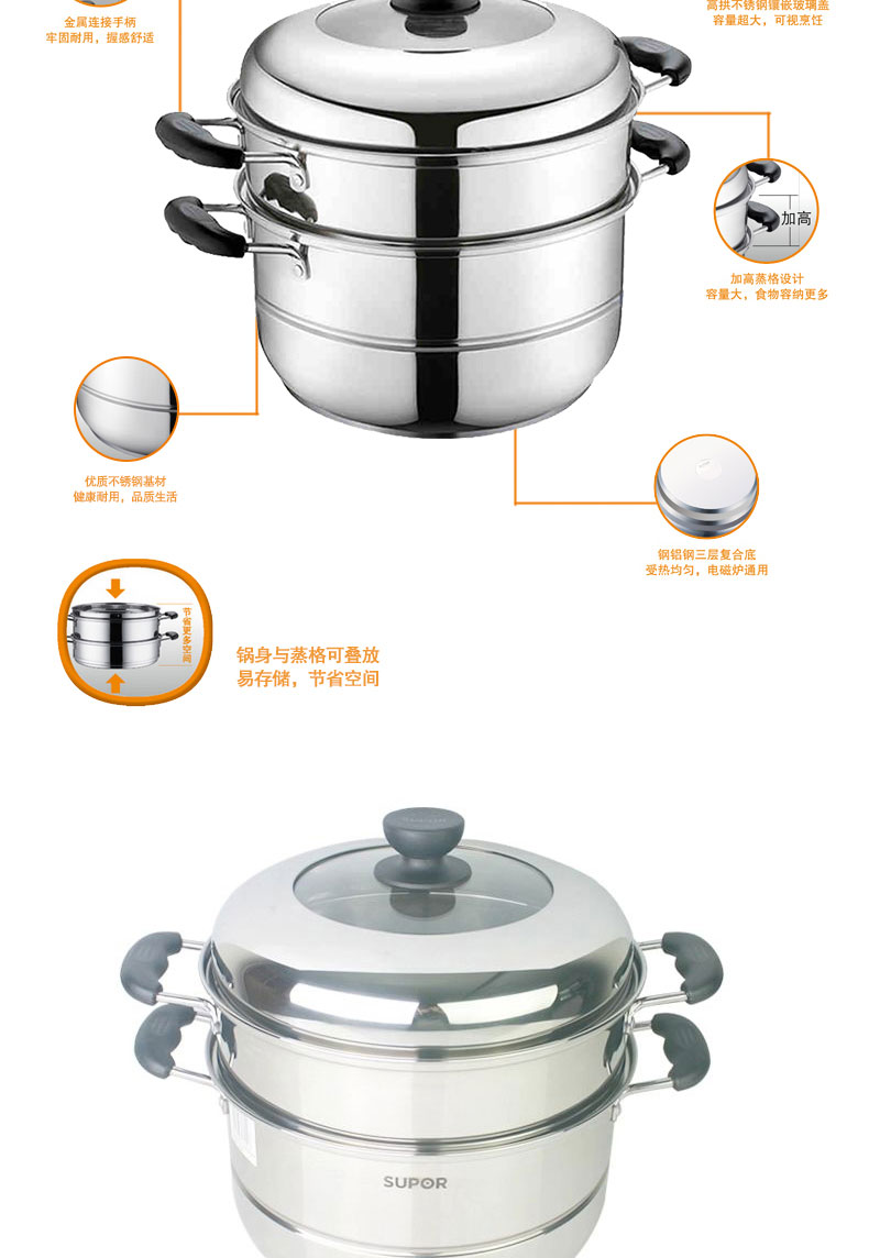 易存儲不銹鋼雙層復底蒸鍋