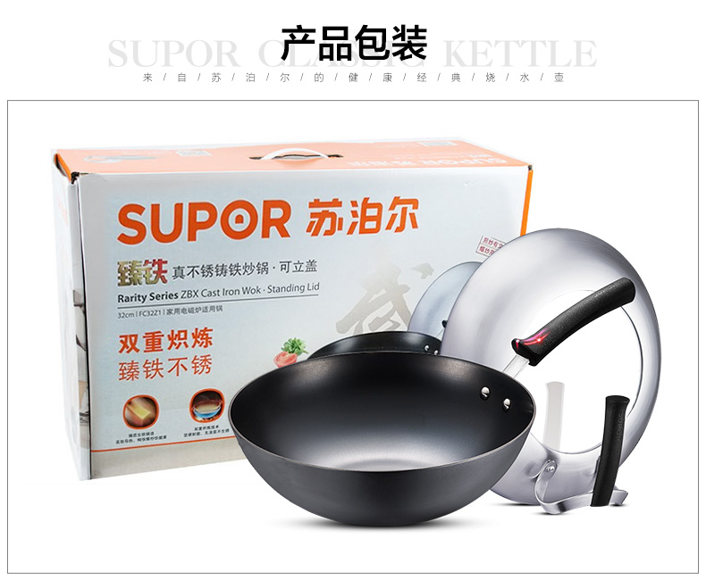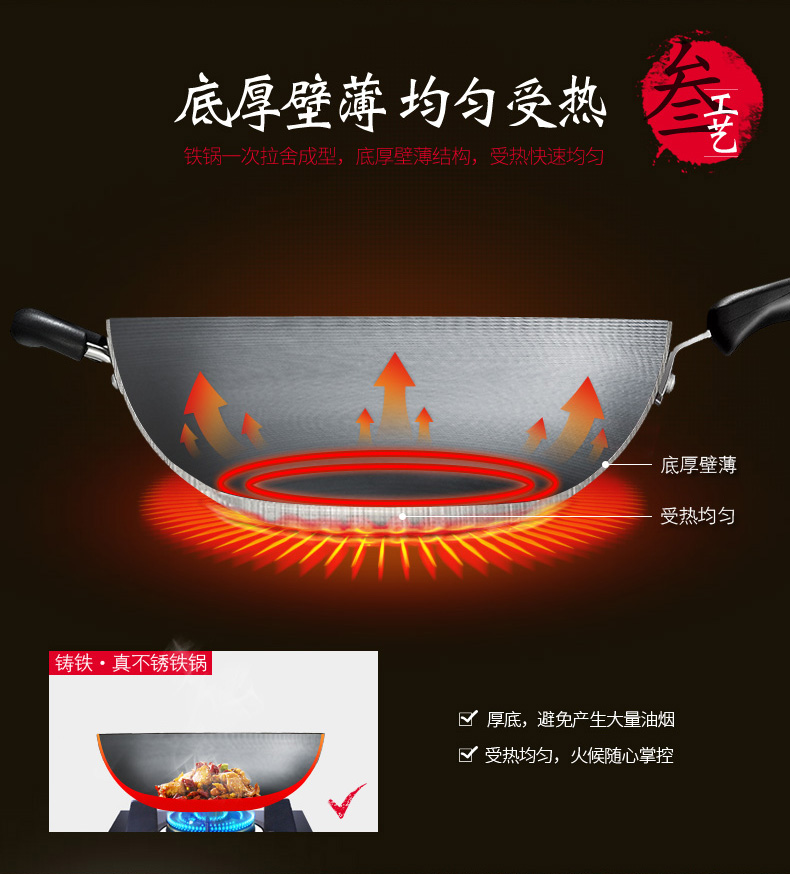 臻鐵真不銹鑄鐵炒鍋·可立蓋