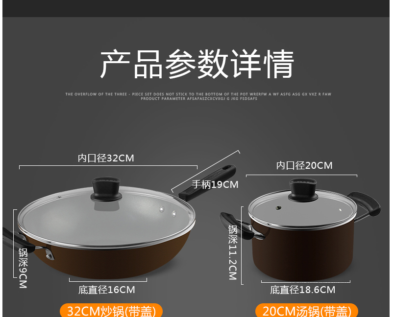 產(chǎn)品組成:炒鍋+湯鍋+煎鍋
