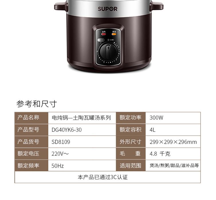 功能:定時(shí)、保溫、一鍵燉