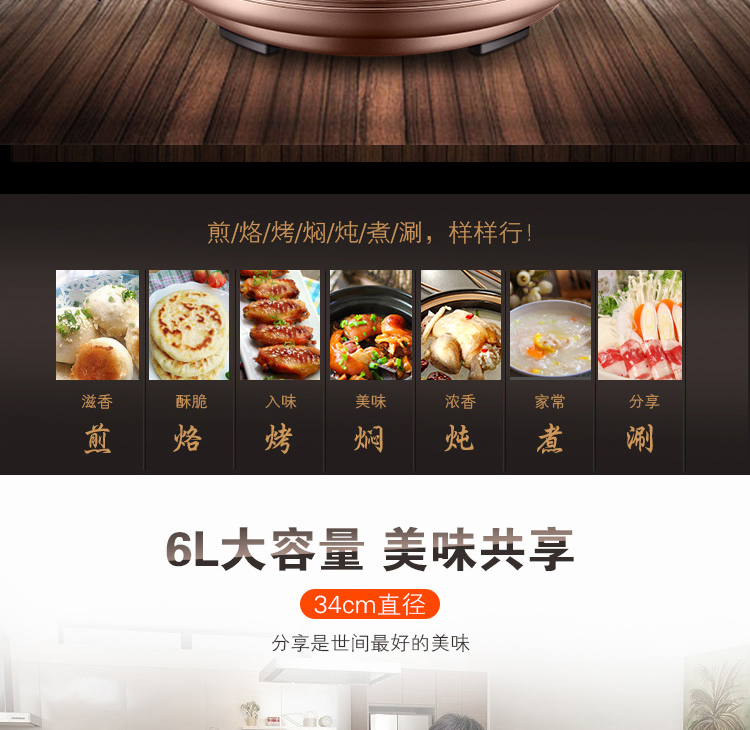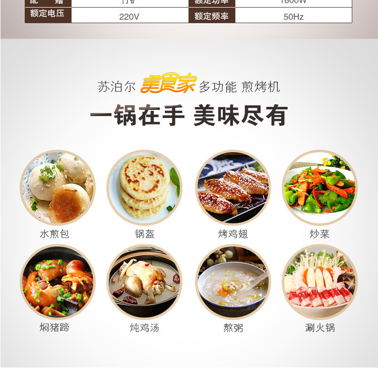 功能:煎、烙、烤、炒、燜、燉、煮、涮
