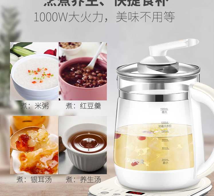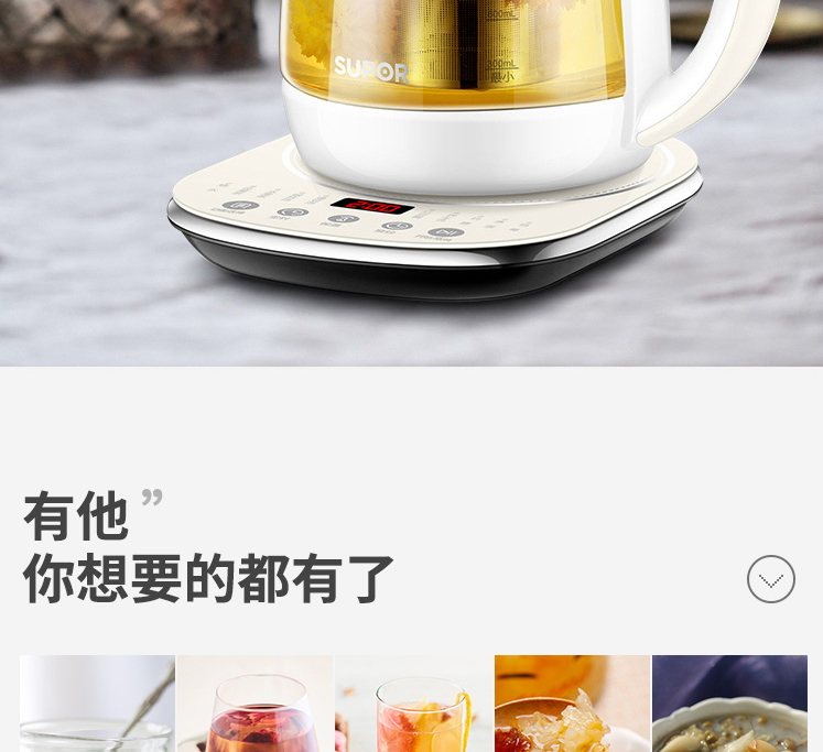 功能:燒水、花果茶、水果茶、銀耳湯、綠豆湯、紅豆羹、養(yǎng)生湯、藥膳、煮蛋、消毒