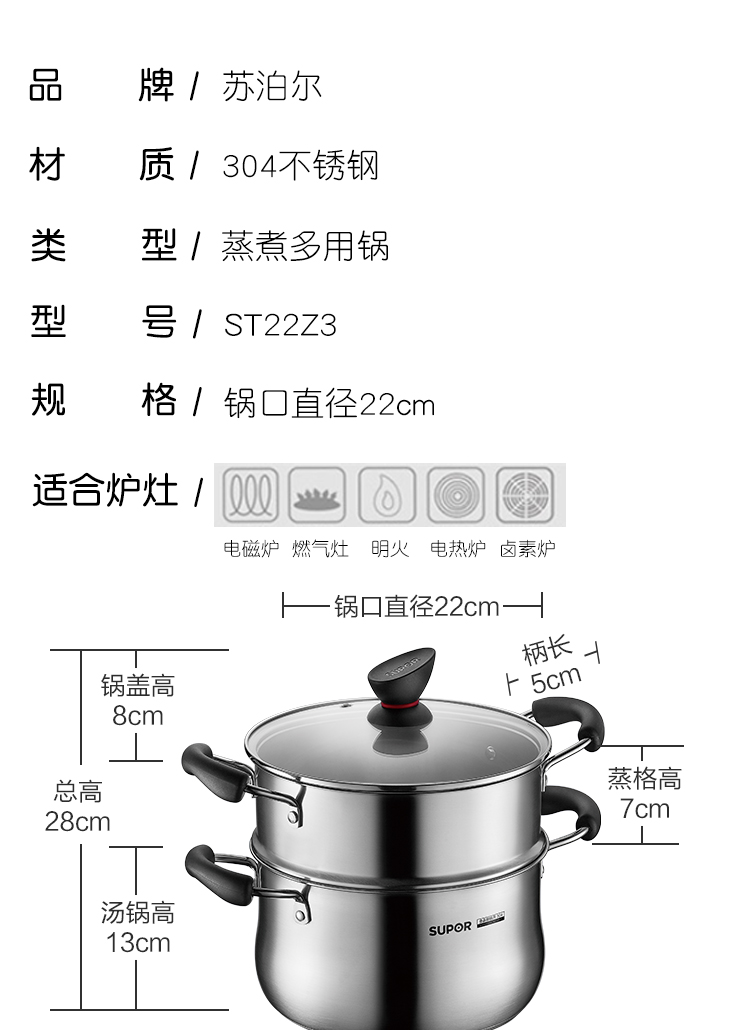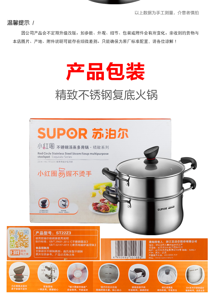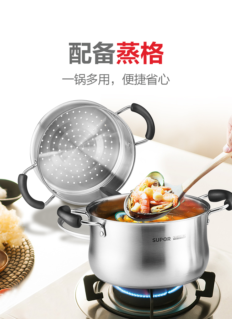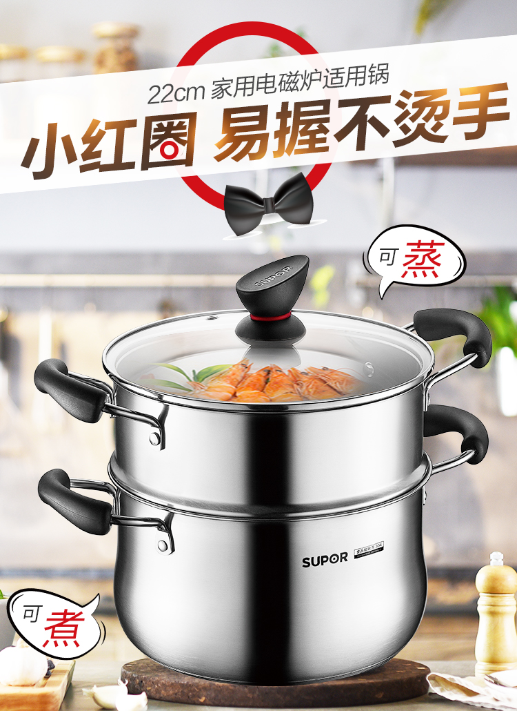 小紅圈不銹鋼蒸煮多用鍋