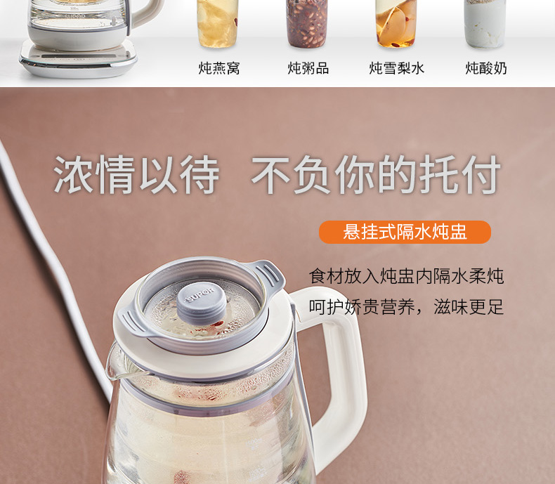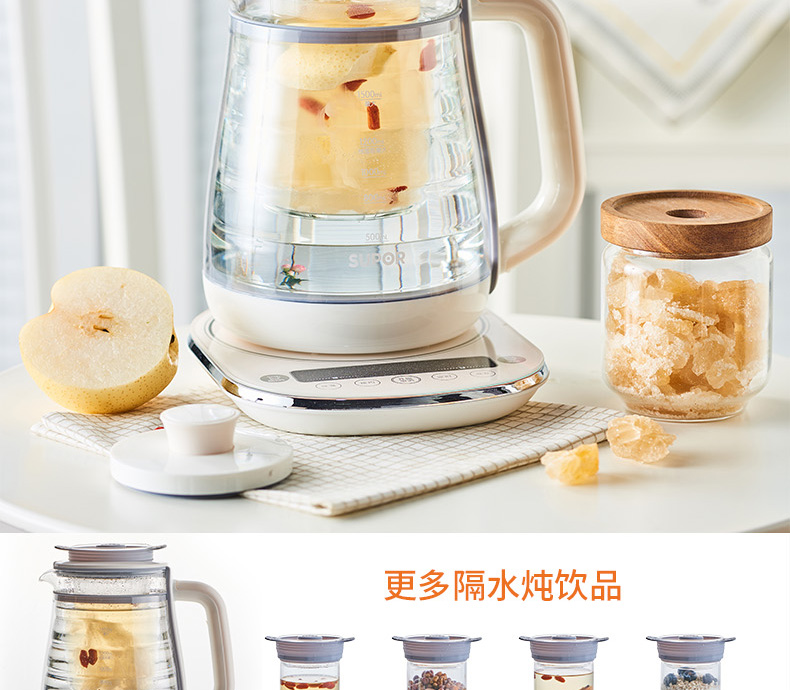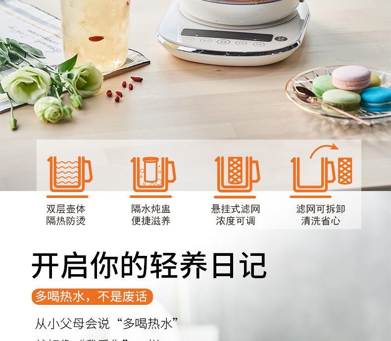 按鍵功能:燕窩、藥膳、粥品、酸奶、雪梨、燒水、花果茶、銀耳湯、紅豆湯、養(yǎng)生湯、預約、定時、泡發(fā)