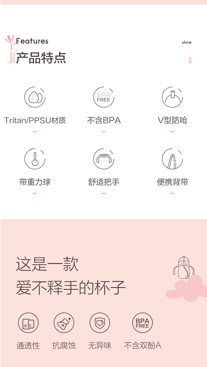 特點(diǎn):V型防嗆、耐腐、不含雙酚A