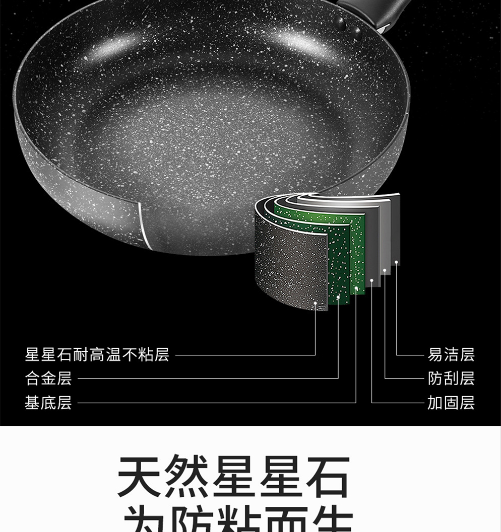 麥飯石不粘層-不粘抗磨層-硬化層-合計(jì)基材速熱曾-硬化層-不粘抗磨層-麥飯石不粘層