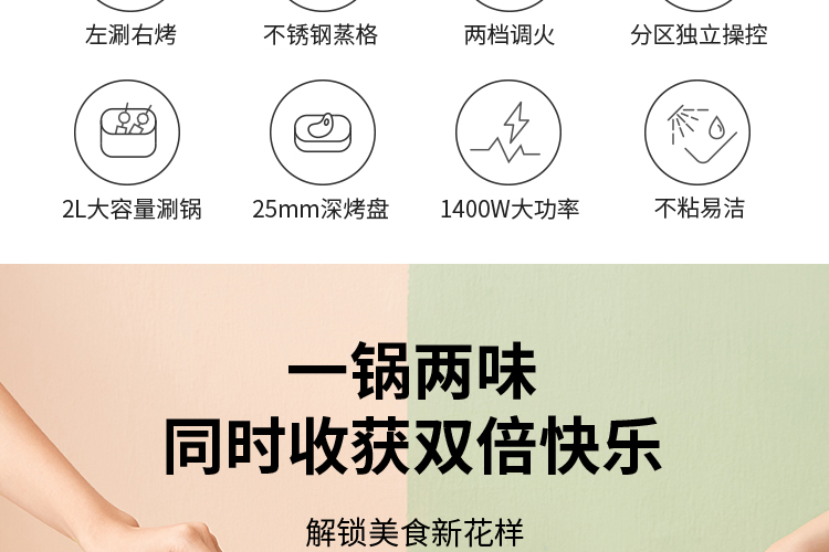 烤盤尺寸:2L容量涮鍋,25cm烤盤