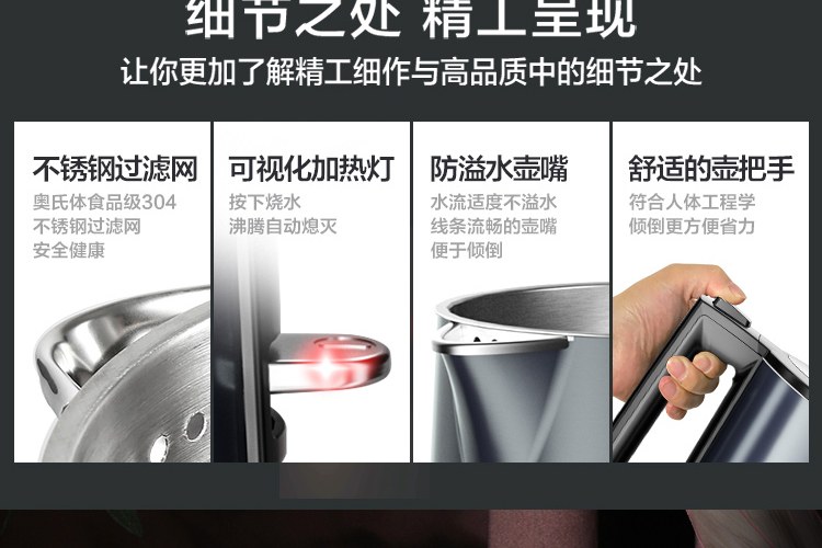 電熱水壺材質(zhì): 304不銹鋼