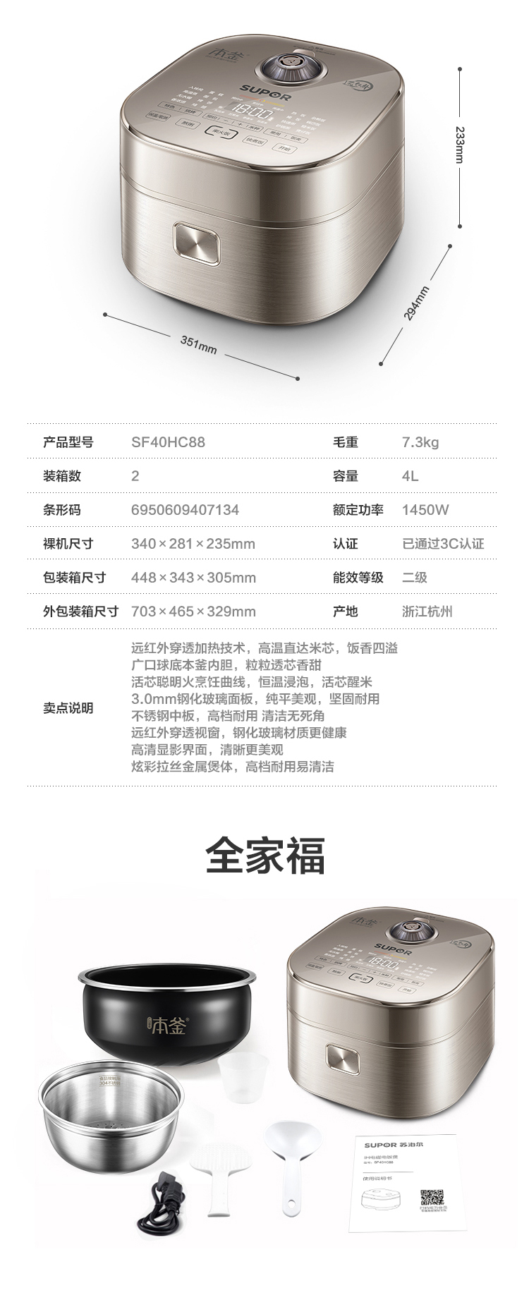 特點:遠紅外加熱、IH、本釜、快煮飯