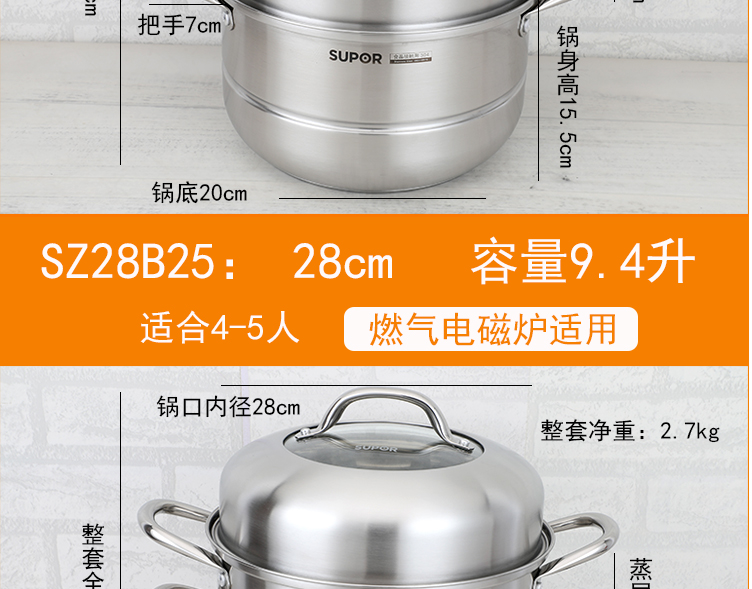 易存儲不銹鋼三層復(fù)底蒸鍋