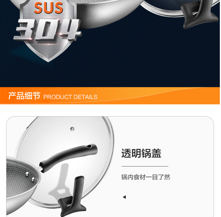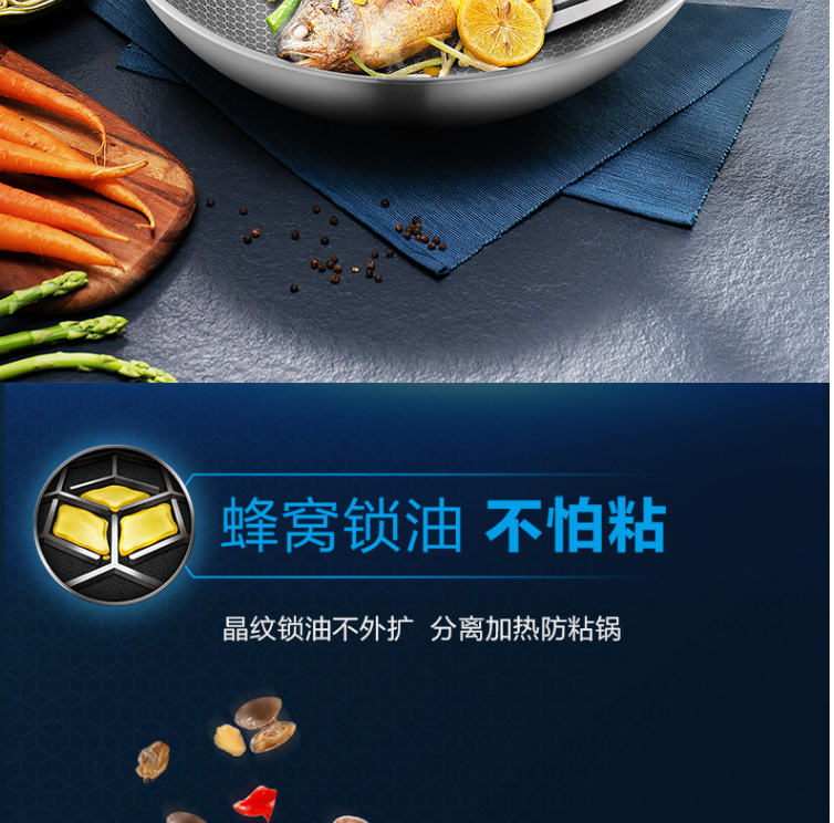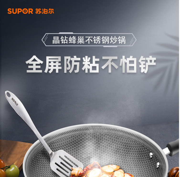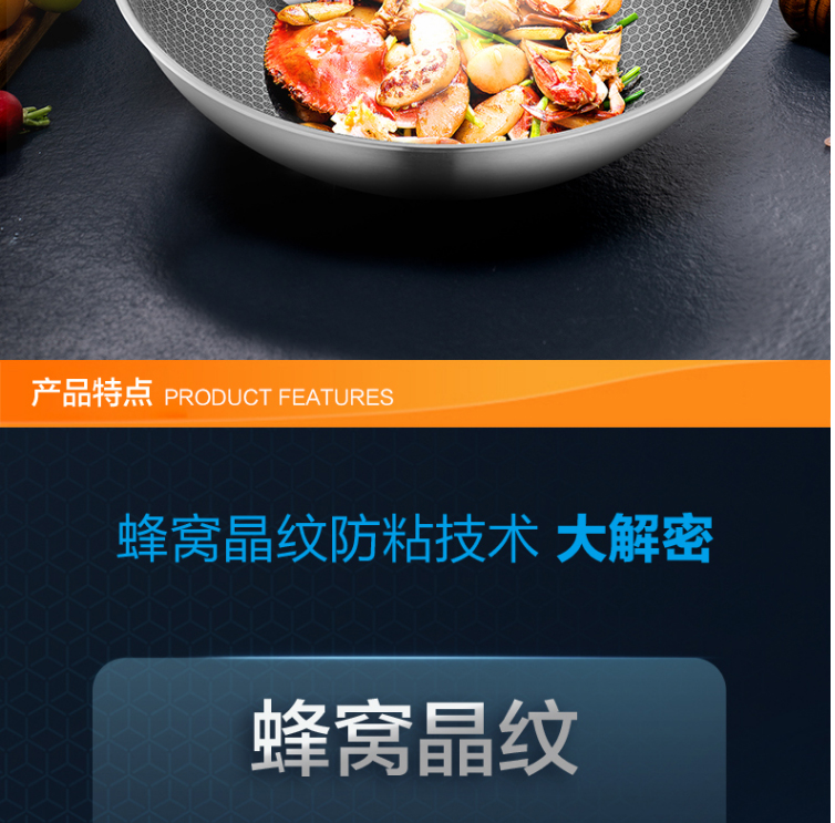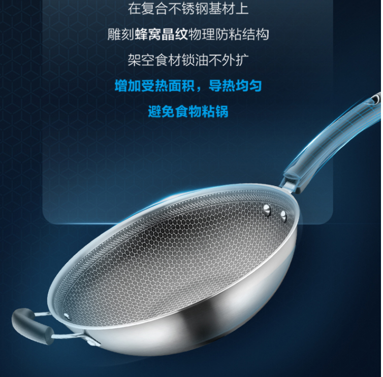 晶鉆蜂巢不銹鋼炒鍋