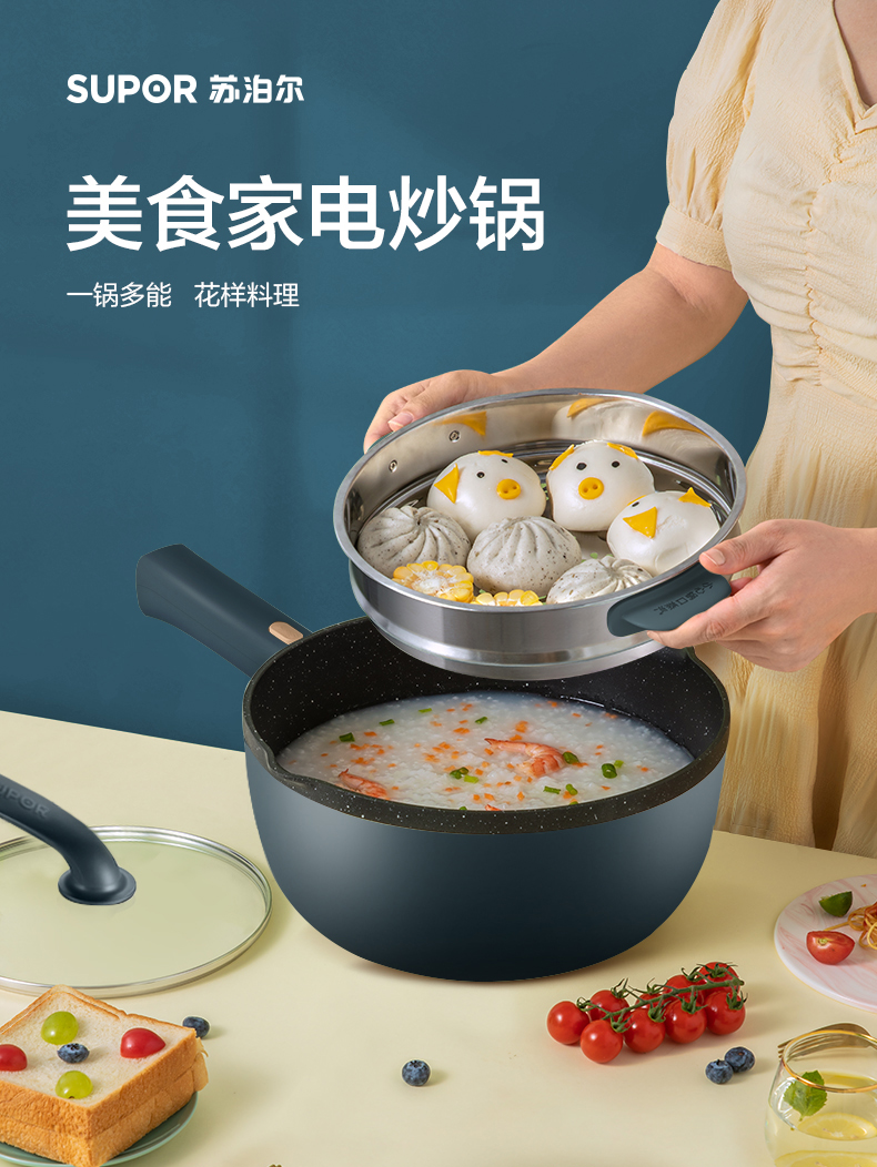 特點(diǎn):?jiǎn)问植僮?、加深烤盤可涮煮可蒸