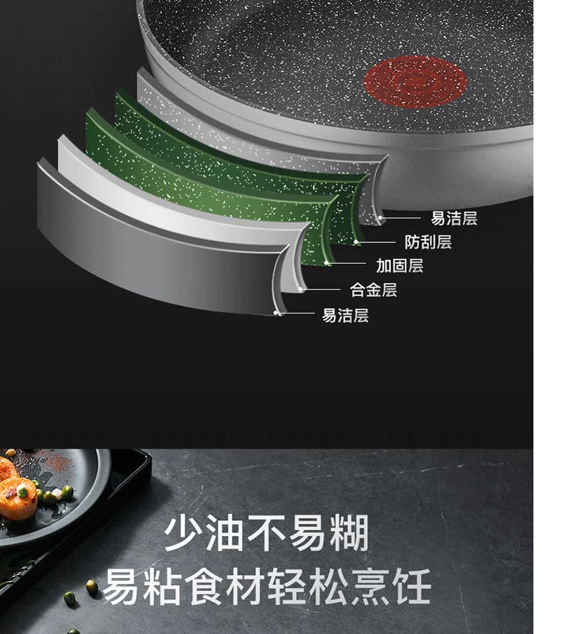 材質(zhì):易潔層-防刮層-加固層-合金層-易潔層