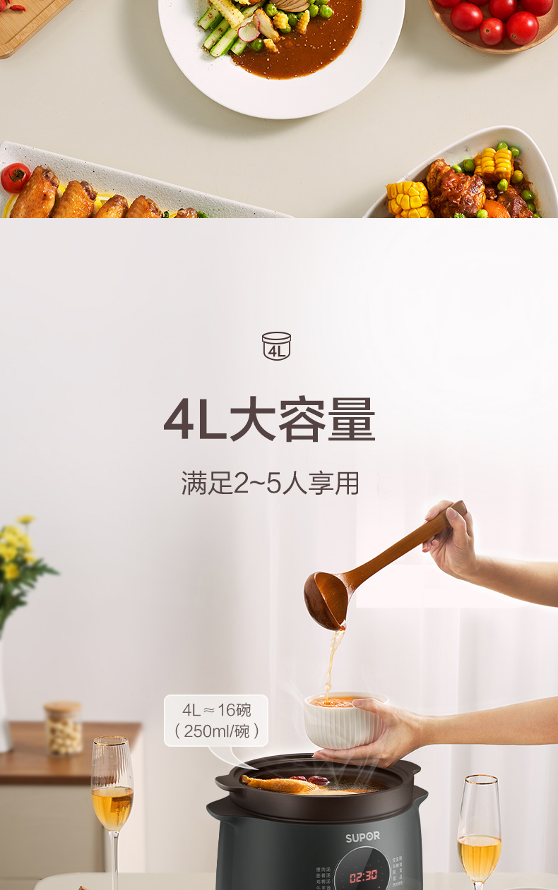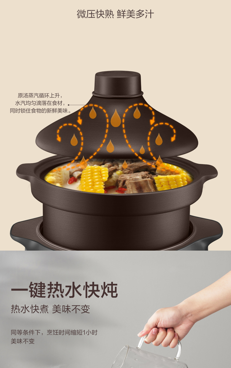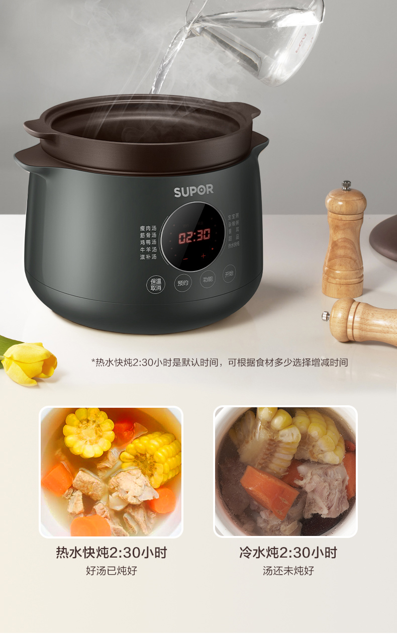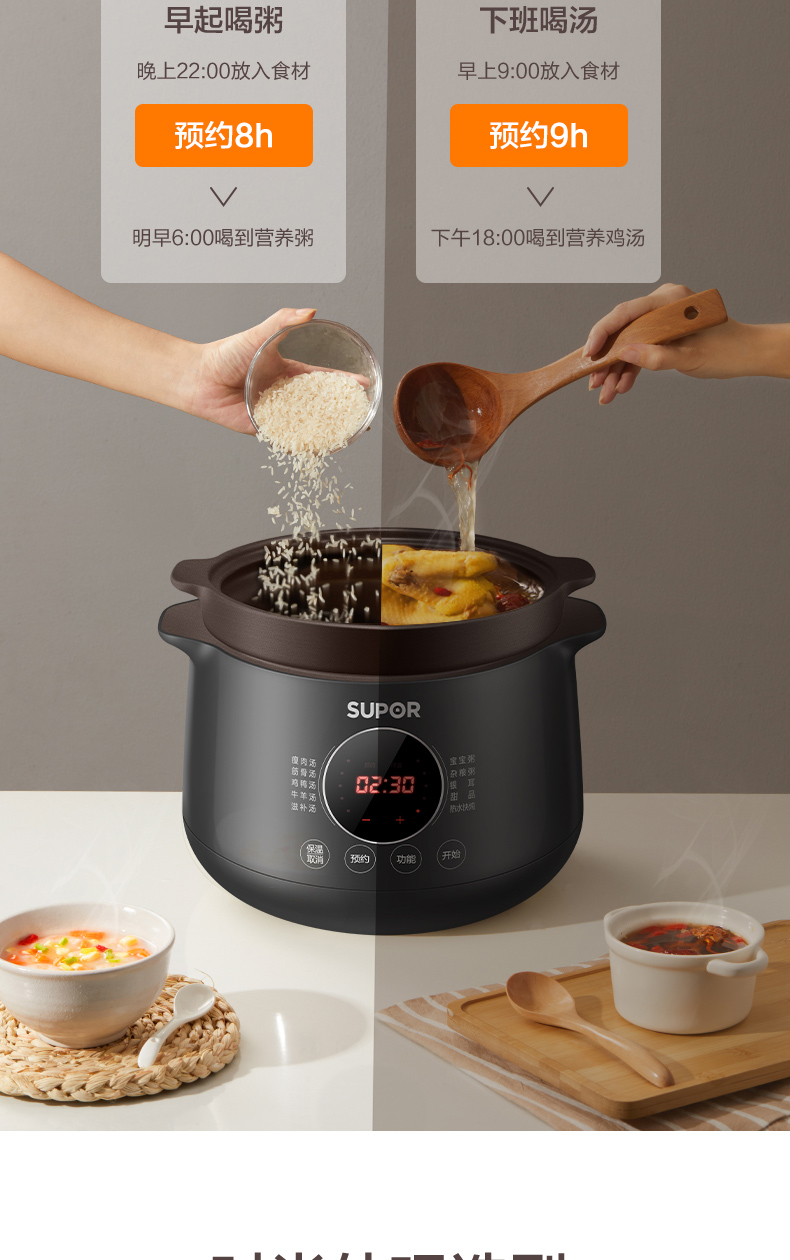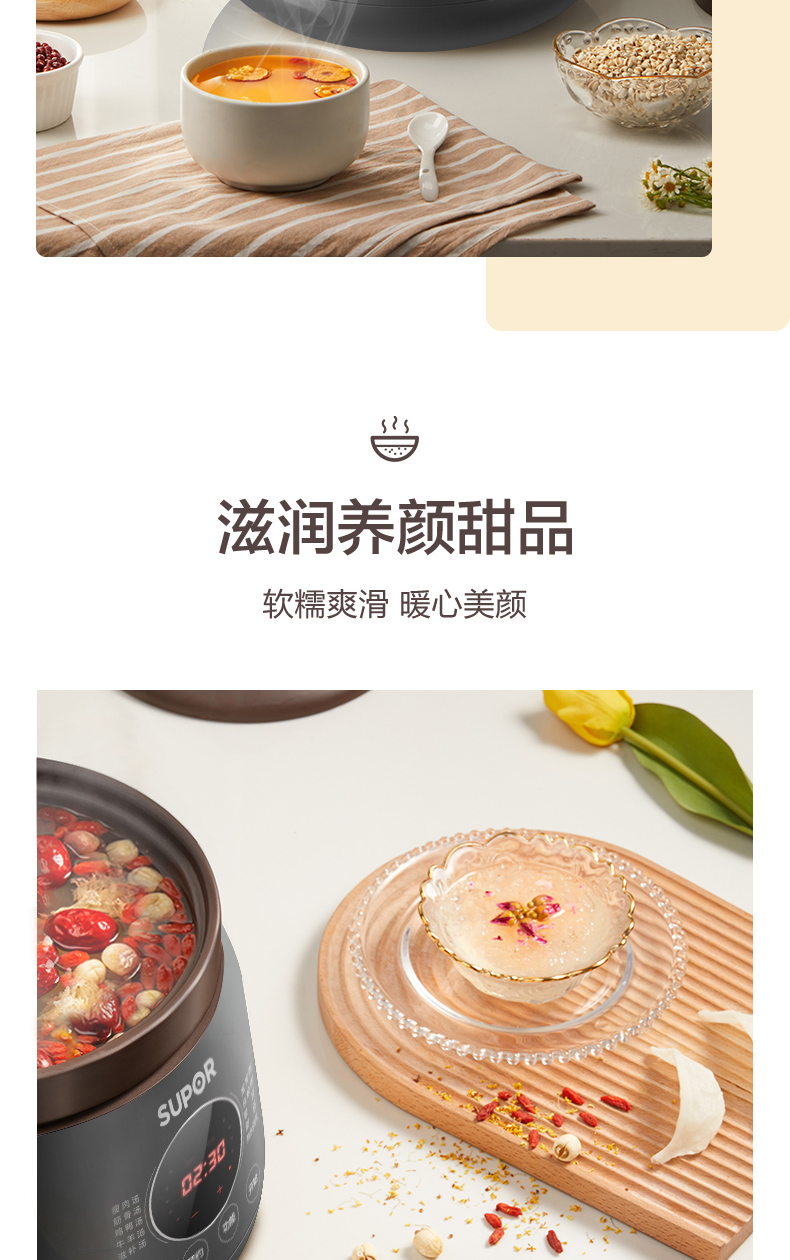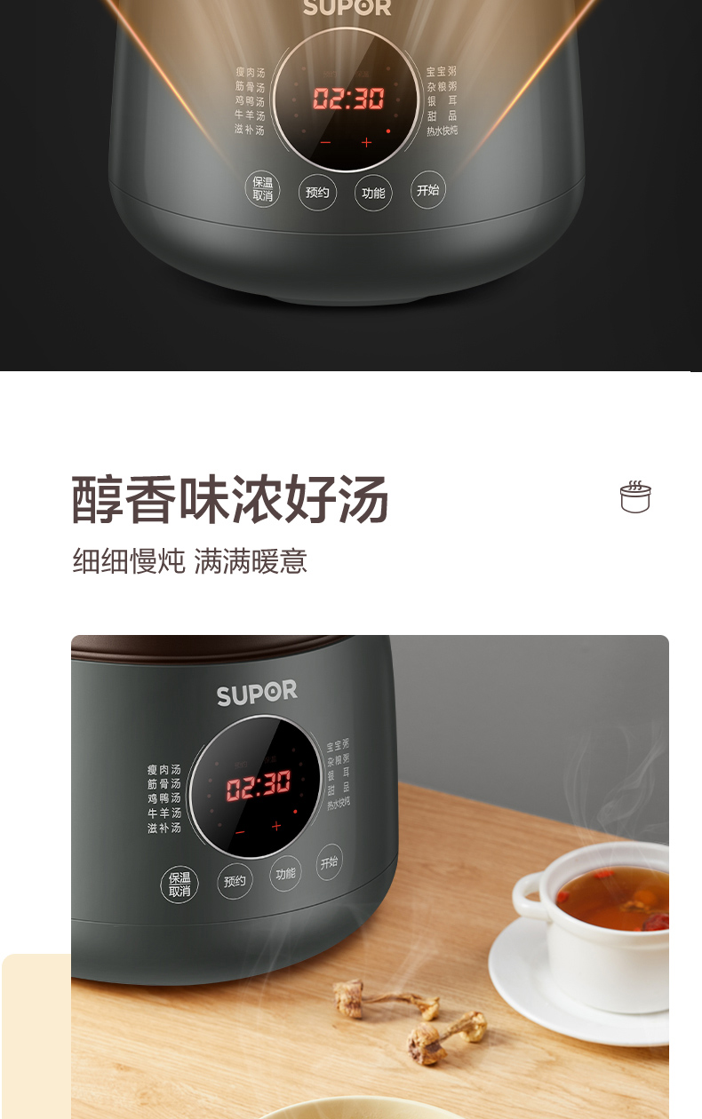 功能:瘦肉湯、筋骨湯、雞鴨湯、牛羊湯、滋補湯、寶寶粥、雜糧粥、銀耳、甜品、熱水快燉