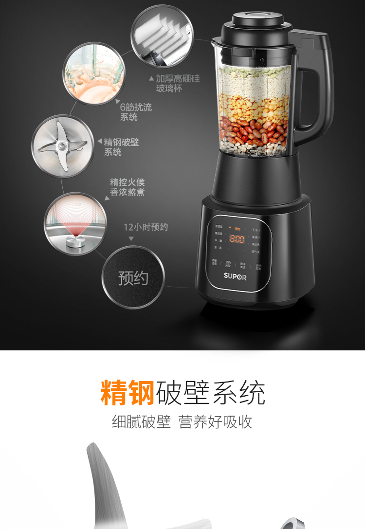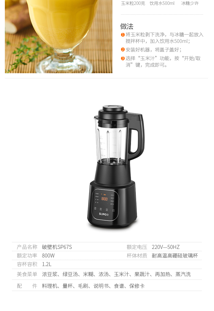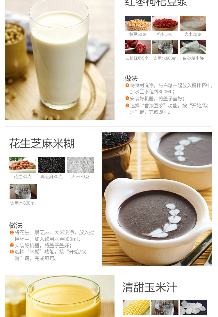 功能:濃豆?jié){、綠豆湯、米糊、濃湯、玉米汁、果蔬汁、再加熱、蒸汽洗